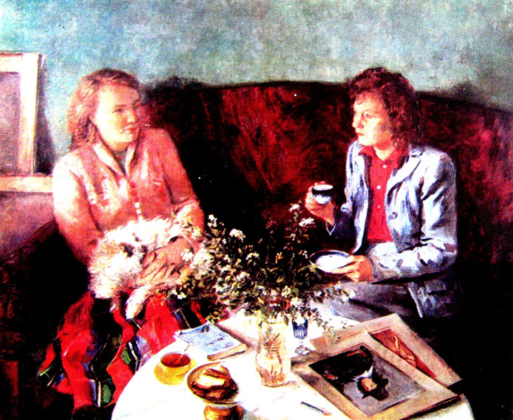 Сразу запоминаются его автопортрет, резкий профиль В. Э. Мейерхольда на фоне конструктивистских декораций (1925), спортивная стойка акробатки, запечатленной прямо в упор, в фас ("Акробатка", 1926) и другие. Он ездил в Италию и Германию в 1928 г. и там изучал не только живопись, но и вообще артистическую жизнь Западной Европы.