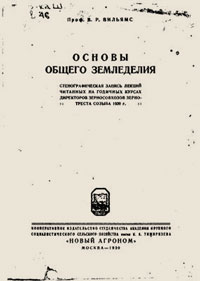 В 1939 г., незадолго до смерти, В. Р. Вильямс написал специально для широких кругов колхозных и совхозных работников книгу "Основы земледелия".