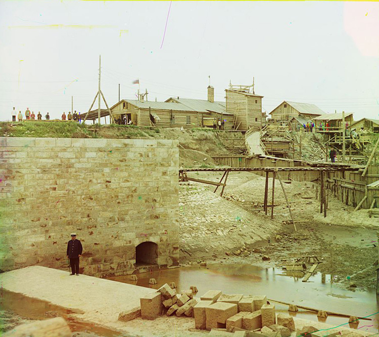 Можно много приводить схем, иллюстраций тех объектов, «где руку приложил» наш герой очерка. Но остановимся на том из сооружений, строительство которого волею судеб запечатлёно на первых в России цветных фотографиях 1912 г. А это связано с выдающимся фотографом-экспериментатором Сергеем Михайловичем Прокудиным-Горским (1863 – 1944)[2].