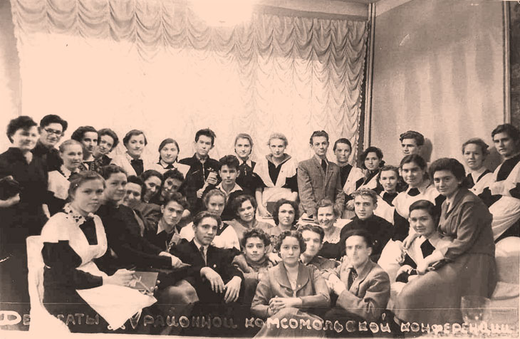 Районная конференция, Г.Громова в середине группы над кудрявой головой юноши