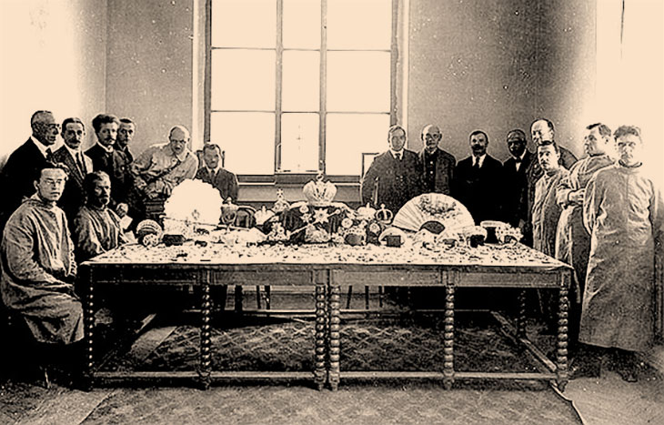 В феврале 1919 года А.М. Горький и М.Ф. Андреева[1]возглавили Оценочно-антикварную комиссию Народного комиссариата торговли и промышленности. Председатель этой комиссии – Горький привлек к работе 80 лучших питерских специалистов (в том числе, и сына К.Феберже – А.К. Фаберже). Они отбирали вещи, имеющие художественную или историческую ценность, из имущества, конфискованного во дворцах и особняках знати, в банках, антикварных лавках, ломбардах и т.п. Самое ценное из отобранного направляли в музеи, а большую часть – для продажи за границей с молотка. Ещё в пору Февральской революции в Петрограде шла бойкая антикварная торговля.