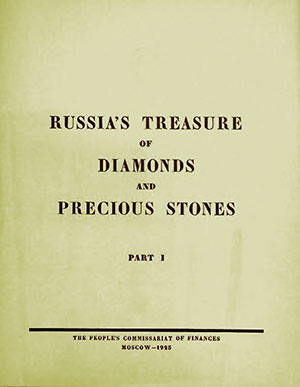 Ценности бриллиантовой комнаты Зимнего дворца были обнаружены в Москве, в подвалах Оружейной палаты в апреле 1922 года. Они поступили в Гохран, образованный в 1920 году для учета и хранения ценностей. Именно для этой коллекции была создана специальная комиссия для их изучения и классификации драгоценностей под руководством академика Александра Евгеньевича Ферсмана (1883-1945). Члены комиссии прилагали все силы к тому, чтобы отобрать и сохранить наиболее ценные произведения искусства, пожертвовав определенной частью предметов дворцового обихода. По результатам работы комиссии был составлен четырехтомный труд «Алмазный Фонд СССР», включивший подробное описание всех драгоценностей династии Романовых, вывезенных из бриллиантового кабинета Эрмитажа.