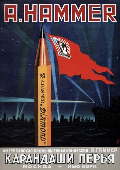 Алапаевского месторождения асбеста и поддержки голодающих России импортом зерна. Был лично знаком со многими руководителями СССР от Ленина, до Горбачева. Занимался Хаммер и искусствоведением как любитель и бизнесмен. .Построил в Москве в 1926 г. карандашную фабрику. Ещё ранее вовлек всю свою семью (отца, дядю, брата) в торговое дело – скупку-продажу драгоценностей, которое было поставлено на поток. Народная власть СССР окончательно решила продавать за рубеж всё имеющиеся в своем государстве как музейное, так и экспроприированное у буржуев достояние.