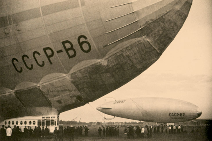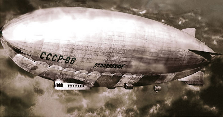В 1931 г. в разгар первой пятилетки в СССР из Италии приехал известный во всем мире конструктор и испытатель дирижаблей Умберто Нобиле (1885-1978). С 1932 г. он стал работать по контракту директором Дирижаблестроении СССР в нашей стране вместе с 9 итальянцами помощниками и квалифицированными рабочими. У.Нобиле обязался построить 5 различных дирижаблей и подготовить для России квалифицированных специалистов для конструирования и эксплуатации этих цеппелинов. В 1933 – 1935 гг. были построены и стали работать в народном хозяйстве три дирижабля с мягкой оболочкой (СССР В-1, В-2 и В-3), позже – с полужесткой оболочкой – В-5, В-6. Размеры последний имел характеристики: длина-104,5 м; диаметр 18,8 м; объём 18 500 куб. м. В 1937 г. В-6 пробыл в полете с 20 воздухоплавателями в гондоле 130 час. 27 мин. и проделал путь: Москва-Калинин-Курск-Воронеж-Новгород-Брянск-Пенза-Воронеж.