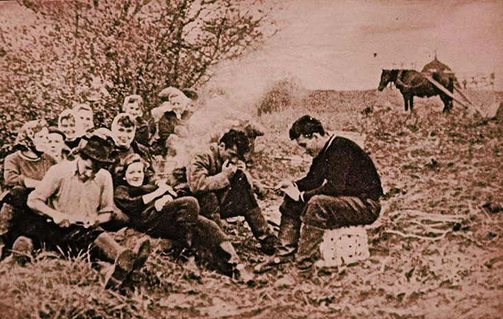 Нас человек двадцать разместили по избам: где 5, где 7 и т.д. человек. Целый месяц мы не видели в этом регионе ни трактора, ни автомобиля. Всюду выручала лошадка: на ней привозили со станции хлеб и другое продовольствие, на ней же выворачивали плугом картофель из гряд, и на ней же отвозили собранный в тару нами урожай в большие бурты. Последние, устраиваемые где-нибудь посреди поля, укрывались на осень и зиму соломой и землей, для сохранения клубней до весны.