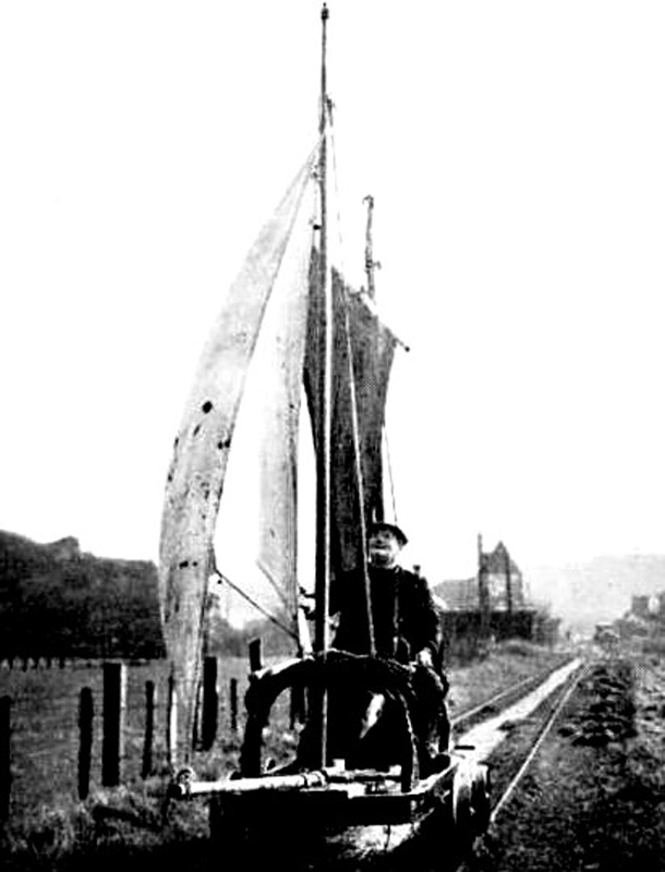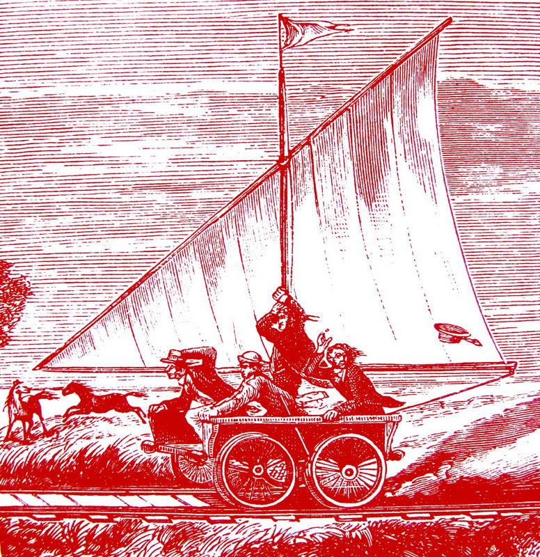 В первой трети XIXв. железные дороги вытеснили собой те парусные сухопутные повозки которые кое-где были в ограниченном употреблении, так как на транспорте произошла настоящая революция – появились паровозы и рельсы, тянущие по ним вагоны. Но сторонники парусных эипажей (ещё не зная что такое – экология) и тут вскоре удачно применили в виде тягового средства – ветер для передвижения по рельсам парусных вагонов.