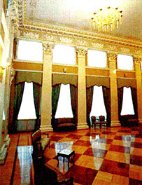 Украшением зала стали бронзовые чеканные люстры, увешенные хрустальными подвесками. В этом зале также предлагаются, как правило, рассказы о двух исторических былях, напрямую связанных с этим местом.