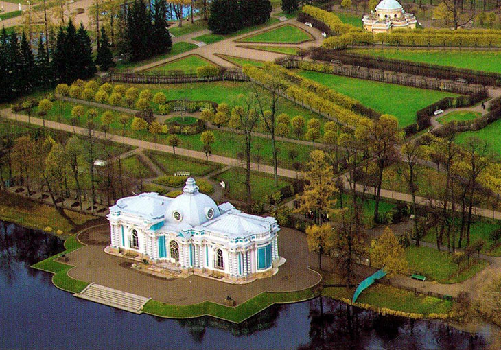 Парк также подвергся перепланировке и в этой работе ведущую роль сыграл архитектор из Италии Дж. Тромбаро (1750-1811). Он превратился его в нечто лирико-романтическое, на английский манер. Мелкие пруды и узкие каналы были заменены на один большой пруд с тремя искусственными островками. Равнинную планировку сада изменили частично на холмистую, насыпав искусственные горки, самую большую из которых назвали «Парнасом».