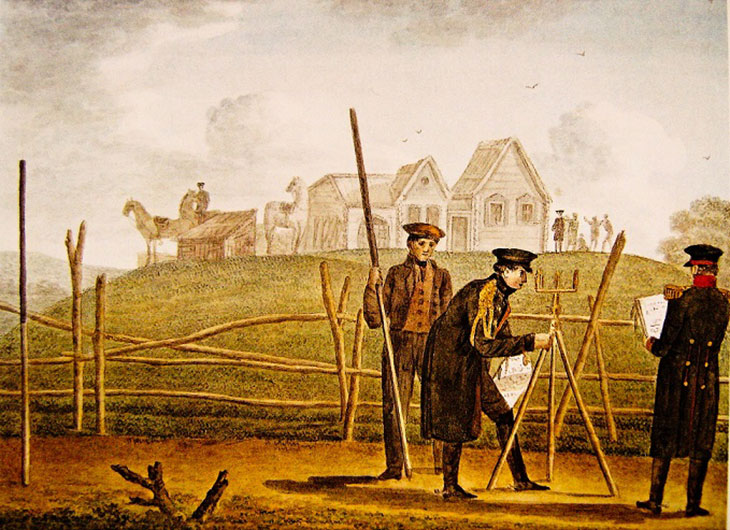 Первые геодезические съемки студетов ИКИПС, 1810 г.