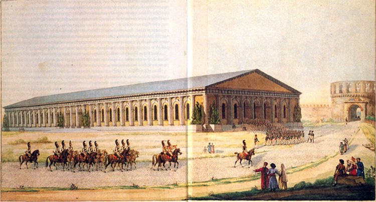 30 ноября такой блестящий парад состоялся, его принимал сам император Александр I. В самом большом манеже в Европе (166 м х 45 м). Внутри него не было ни одной подпорки, кровля держалась на стропилах особой конструкции, разработанной А.Бетанкуром.
