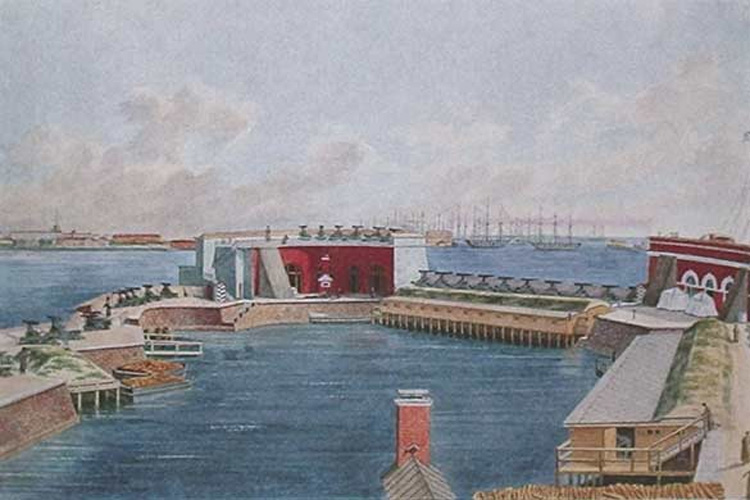 представлял собой сооружение круговой обороны. Главная башня, соединялась по флангам с двумя полубашнями. Горжевая[3] часть с двумя проходами во внутреннюю гавань форта была вооружена 16 полупудовыми единорогами, а сами проходы перекрывались чугунными раздвижными мостами. На форте располагалось 422 человека гарнизона, вооружённого 97 орудиями.