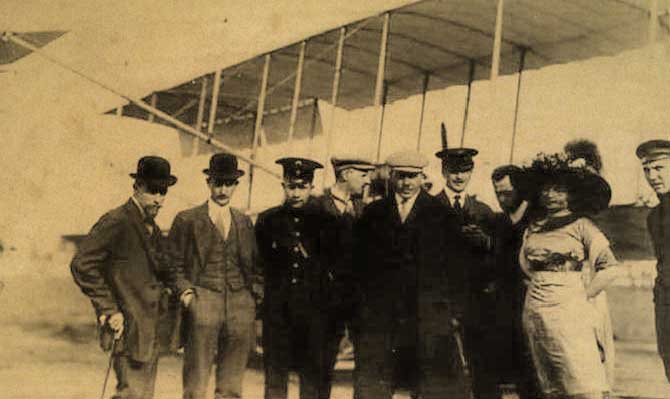 Группа участников первой авиационной недели. Первый слева А.С. Кудашев, рядом с ним предприниматель В.А. Лебедев, пятый слева М.Н. Ефимов. Санкт-Петербург, весна 1910г.