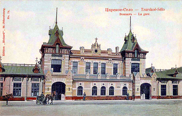 Второе здание вокзала в Царском Селе, арх. К.Тон, с картины худ. Н. Самокиша