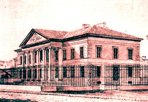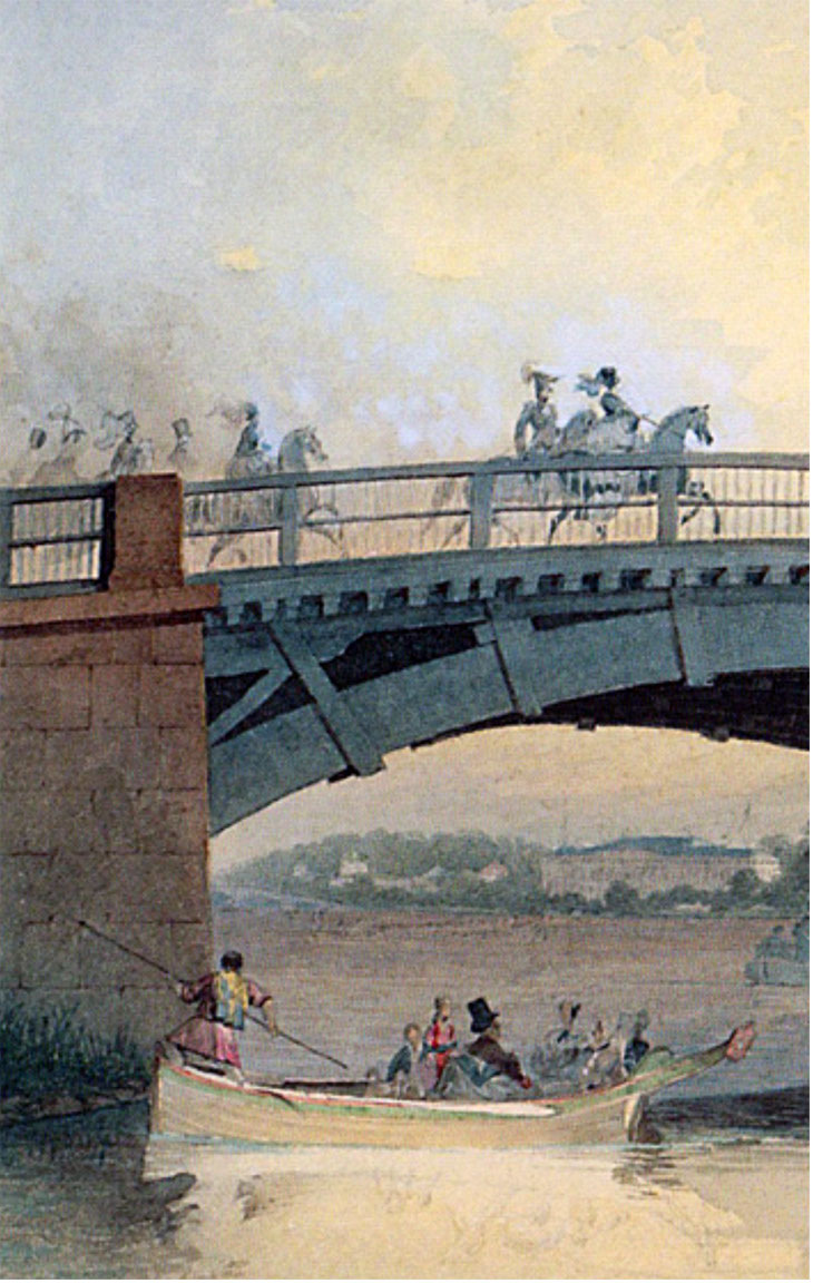 Фрагмет акварели Каменноостровского моста, худ. В.Садовников, 1830 г. – «Береговой устой».
