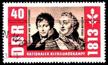 С началом военных действий Шарнхорст возглавил штаб Силезской армии генерала Г. Л. Блюхера. В сражении при Гроссгёршене 2 мая 1813 г. генерал-лейтенант Шарнхорст был ранен ядром в ногу. С незажившей раной он отправился с миссией в Австрию для переговоров о присоединении последней к антинаполеоновской коалиции, но скончался от последствий ранения 28 июня 1813 г. в Праге. Похоронен он был в Берлине на кладбище инвалидов войны, где и по сей день существует это захоронение с могилой его супруги Клары и других членов семьи. Отвлекаясь от главной персоны этого очерка, заметим, что имя Герхарда Шарнхорста было почитаемо во все последующие времена в Германии. Ему был установлен памятник в Берлине, выпущена денежная купюра в 10 марок с его портретом; отпечатана почтовая марка, где он изображен с главнокомандующим русской армии М.И. Кутузовым, учрежден наградной орден в его честь; наконец, его именем были названы самые мощные корабли германского флота: в первую мировую войну крейсер, а во вторую мировую войну – линкор.