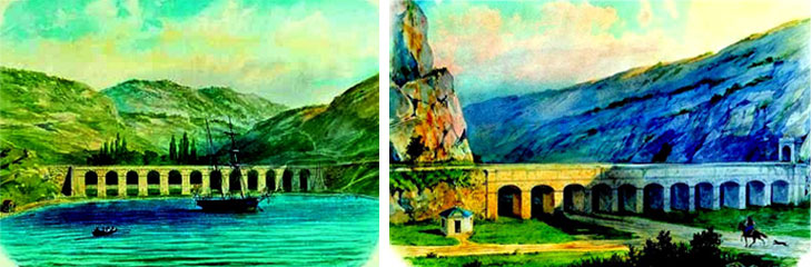 Ещё ранее в 1819 г. Карл Потье создал проект Севастопольских доков, для ремонта кораблей, получивший позже в 1822 – 1823 гг. развитие и исполнение, благодаря деятельности ученого из ИИПСа Антона Рокура. В новую составляющую проекта вошли и пять акведуков, подводящих чистую воду горной реки к сухим докам.