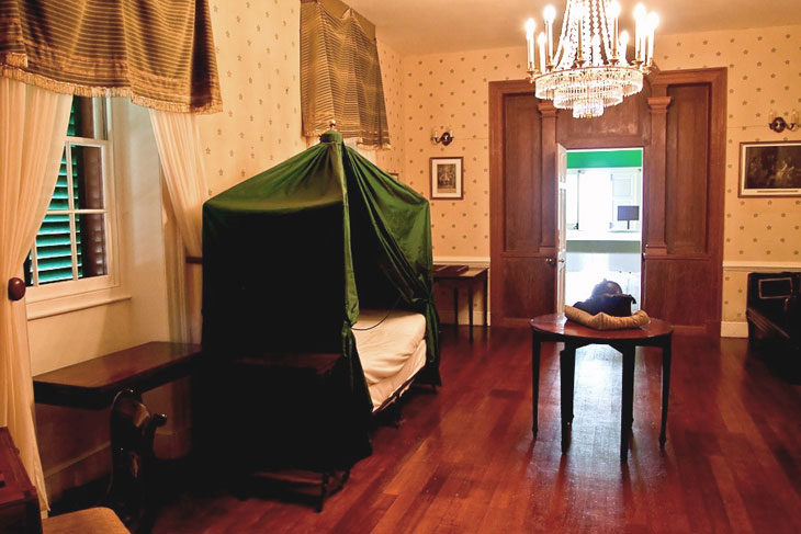 Комната, в которой Наполеон скончался 5 мая 1821 г. Посреди комнаты стол с его посмертной маской |