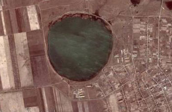 | Католическая церковь в Кларовке – здание для заседания масонов | Круглое озеро в Кларовке (снимок из космоса) |