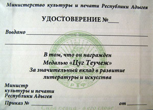 В заключение, я предлагаю фото, мною выполненных, медалей:памятную медаль,посвященную А.Бетанкуру, которую я подарил скульптору В.Горевому и наградную памятную медаль министерства культуры республики Адыгеи, народным художником которой является скульптор М.Шемякин и который может быть и награждён ею. Всё это как бы мои приветы от почти их однокашника...