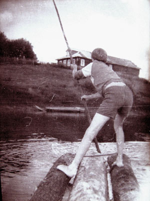 Поражали и леса – казалось бы Север, но нет. Однажды довелось в походе за морошкой с ветераном войны, дедом-соседом идти километра 3-4 в особый лес. Здесь деревья были столь огромными, что крон их не было видно – они сливались где-то в бесконечности, а внизу были муравьиные кучи в два и три метра высотой, так что там невольно приходилось говорить шепотом и чувствовать себя пигмеями. Ещё я даже изловчился на Онежье косить траву по крутому косогору берега реки, а А.С. и моя Людмила шевелили сено и сгребали его в стожки, которые отдали всё тому же соседу для кроликов. Избы там делались под одну крышу с: хлевом, сеновалом и сараем для дров. Доски и бревна строений поражали огромными размерами и шли через всё строение насквозь. Многие деревни брошенные, никто там не живет и даже на лето туда никто не приезжает. Дома в них стоят черными от времени с ещё более тёмными глазницами когда-то бывших окон, наводя жуть и тоску, т.к. кажется, что там ещё обитает дух некогда живших в них людях. Брр… В городе мы ездили друг к другу в гости, в основнм по дням рождения. Такое теплое отношение одной семьи к другой вызвало у Анатолия Сергеевича подозрение – уж не сыном ли я был Анны Дмитриевны…