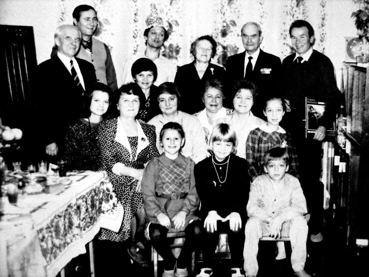 Один из праздников семьи Кореневых. Третий ряд, по средине Анна Дмитриевна и Анатолий Сергеевич