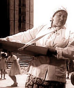 Из трудовой же её деятельности мне известно два места её работы: первое – в довоенное время (т.е до 1941 г.), когда она была продавцом кондитерского отдела магазина Торгсина для иностранцев в таможенной зоне ленинградского Торгового порта, в том числе и благодаря хорошему знанию иностранных языков; второе – в послевоенное время, когда она работала в магазинах по продаже керосина в разлив (а это было время керогазов и керосинок – главных бытовых разогревательных приборов в 1940 – 1950 гг. в Ленинграде). Ещё она продавала папиросы на улице (с лотка наперевес через плечо) – в жару, в дождь и в стужу. В это с трудом верится, но как было уже предвосхищено в заголовке – она не чуралась любой работы, т.е. поневоле пришлось ей стать «аристократкой без комплексов».