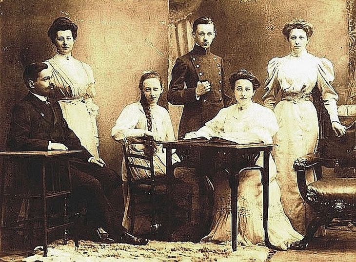 Семейство Лермантовых. Слева направо - В.В.I.,В.В.II,М.В.,Н.В.,Е.А.и А.В., 1912 г.