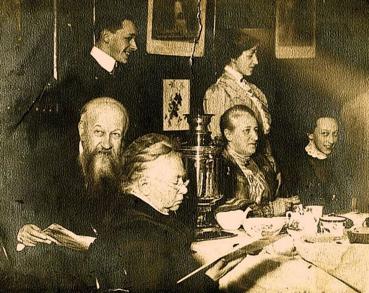 Молодёж семейства Лермантовых. Слева направо: Тыжнов В.И., его жена Елиза. В., А.В., В.В.II.,Н.В. и Е.В, 1905 г.