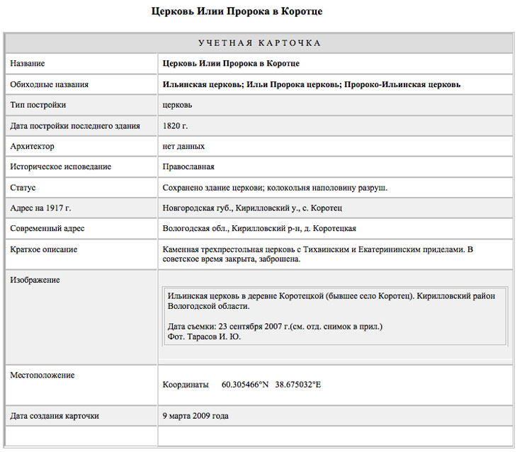 Учетная карточка церкви