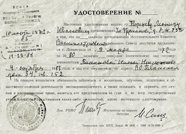Бумага об опеке