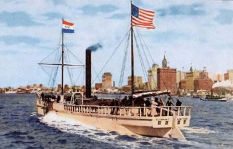 Роберт Фултон, амер., род, 14.11.1765, в г. Литл-Бритон, шт.Пенсильвания США; сконч.24.02.1815, похор. в Нью-Йорке. В школе юный Роберт не блистал успехами, предпочитая проводить свободное время в местных оружейных мастерских. В 1786 году Фултон уехал в Англию, где вскоре создал проект одного из первых пароходов. Реальным стал пароход «Клермонт» с паровой машиной Уатта лишь в 1807 г. А пока с 1794 Фултон направил усилия на разработку системы каналов, кстати, изобрел экскаватор.