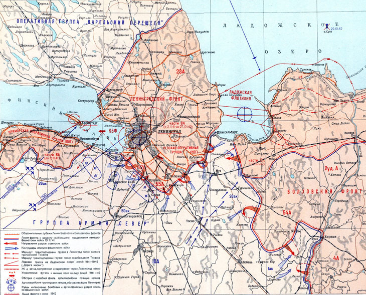 Карта положения фронтов на подступах к Ленинграду на начало 1942 г.